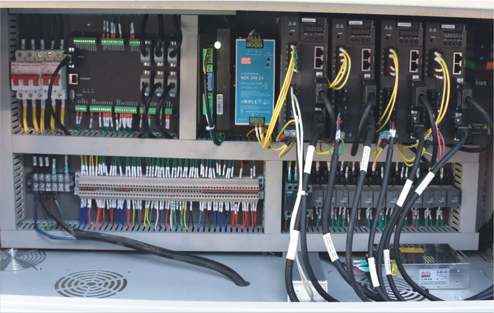 8、電氣系統(tǒng):整機(jī)采用全伺服運(yùn)動(dòng)控制,各種電氣元件、檢測(cè)開關(guān)均采用日本、臺(tái)灣、法國(guó)、德國(guó)等公司產(chǎn)品。